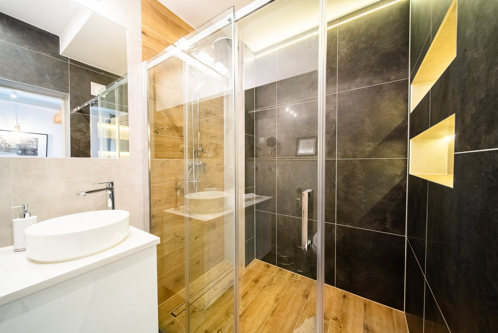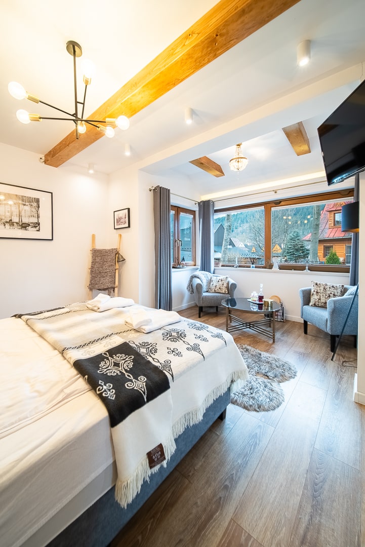 Oferujemy eleganckie i przestronne wnętrza, w tym przytulną sypialnię, przestronny salon oraz w pełni wyposażoną kuchnię z nowoczesnymi urządzeniami. Dodatkowo, nasza łazienka z dużym i przestronnym prysznicem gwarantuje pełny relaks po dniu pełnym aktywności. Nasz apartament jest doskonale położony, umożliwiając łatwy dostęp do głównych atrakcji Zakopanego, sklepów, restauracji oraz szlaków górskich.